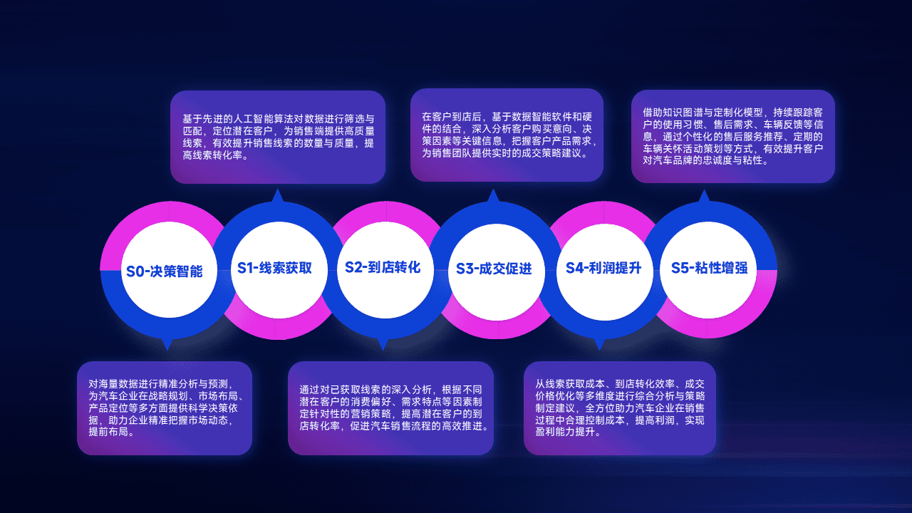 通过拓宽潜在客户来源、、优化线索分配并提高到店转化率,,,以增强销售效率。。同时,,,,利用线索数据不断优化分析模型,,有效提升转化率,,扩大营销影响力。。